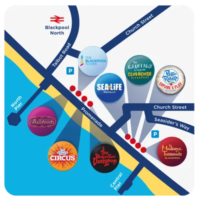 Blackpool North Station is the closest to Madame Tussauds and is approximately 20 minutes walking distance.