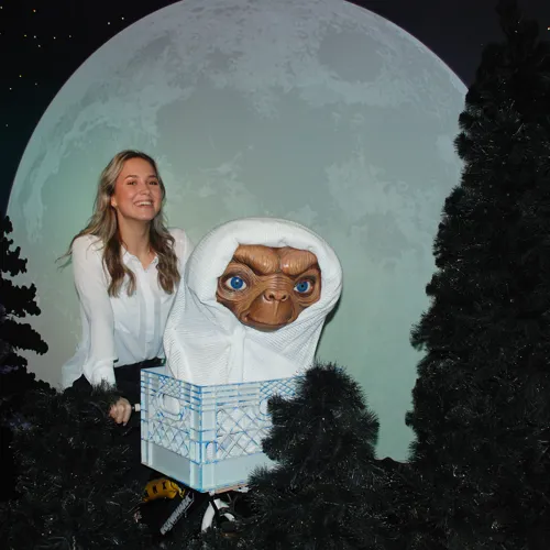 Meet the alien hero E.T. at Madame Tussauds. With his sparkling eyes, this statue brings to life the magic of Steven Spielberg's timeless masterpiece "E.T. the Extra-Terrestrial".