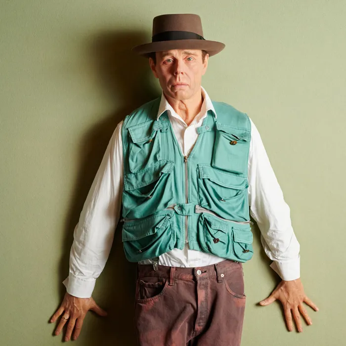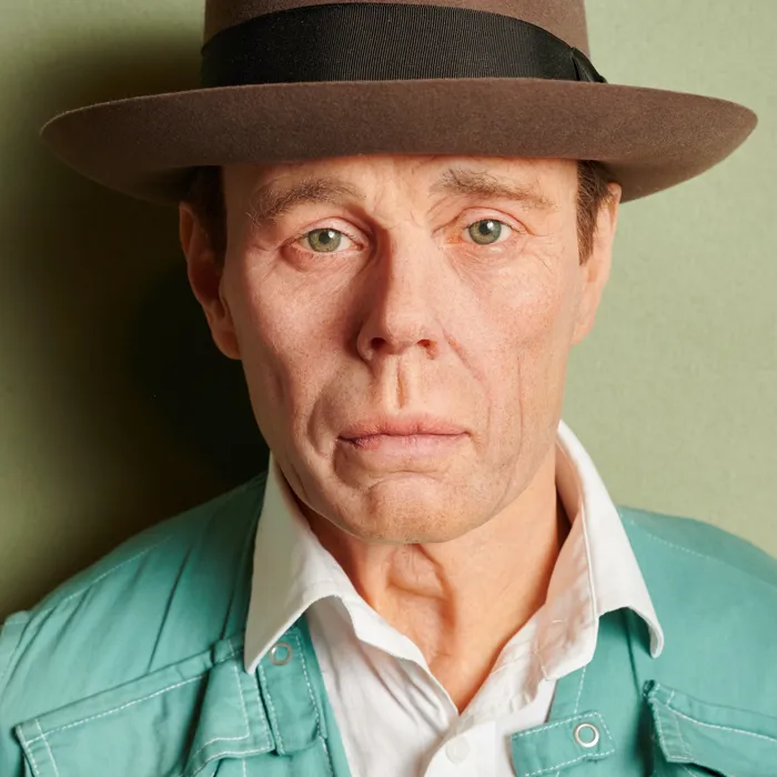 Beuys worked a lot with felt. That`s why the wall behind him is also covered with this material.