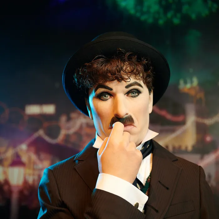 In der Rolle des "Tramps" wird Charlie Chaplin auch im Madame Tussauds Berlin dargestellt. Charakteristisch sind der Zweifingerschnurbart, eine übergroße Hose und Schuhe sowie der Bambusstock und der zu kleine Melonen-Hut auf dem Kopf.