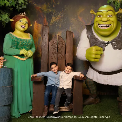 Ontmoet de betoverende Prinses Fiona en de dappere Shrek! Stap in de magische wereld van het sprookjesachtige moeras en ontmoet dit iconische duo.