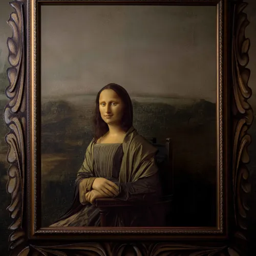 Laat je betoveren door de tijdloze schoonheid van de Mona Lisa, vervaardigd door de meesterlijke hand van Leonardo da Vinci. Haar raadselachtige glimlach heeft eeuwenlang harten betoverd.
