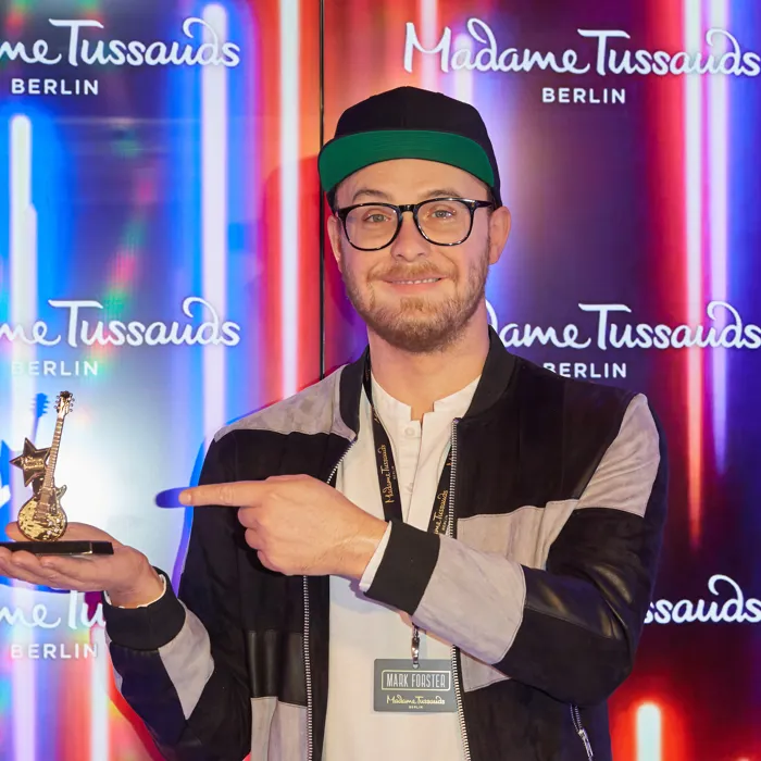 Die Figur trägt das Outfit, welches auch Mark Forster bei seinem Auftritt bei den Swiss Music Awards an hatte.