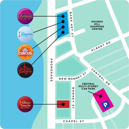 *T&C’s apply. 50% off the tariff scheme. Parking places are not guaranteed and cannot be pre-booked. Subject to availability. Car park open daily 7.00am to 12 midnight. Blackpool Tourism Limited reserve the right to remove this offer at any point.