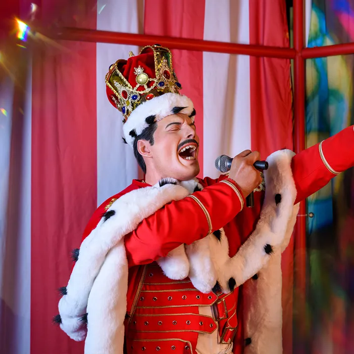 Freddie's look is inspired by his outfit at his 1986 Wembley Stadium performance. An outfit fit for a King...or Queen!