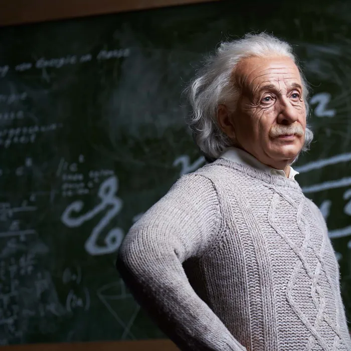 ようこそ「アルベルト・アインシュタイン」の研究室へ。科学が得意なあなたは、サイエンスクイズに挑戦を。白衣と白髪のウィッグを身につけて、博士の助手になりすまして!