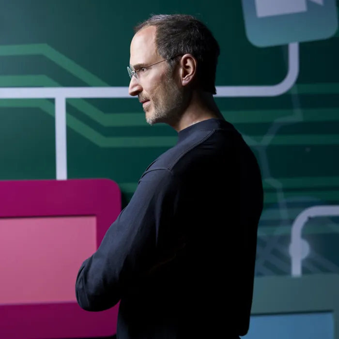 デジタルライフに革命をもたらした「スティーブ・ジョブス」が、黒ニット+リーバイスのデニムという定番スタイルで登場。アップル社の共同創立者に敬意を表して、撮影はぜひiPhoneで!