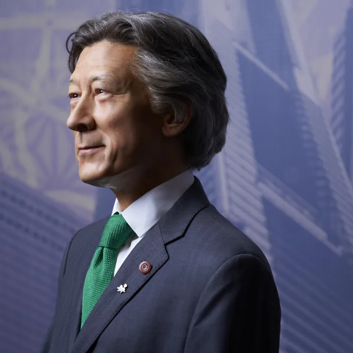 トレードマークでもある白髪は、生え際から人毛を使用した綺麗なフォルムで再現されています。優しい眼差しの小泉元首相が皆様の来場をお待ちしています! 第87・88・89代の内閣総理大臣を務めた政治家。内閣総理大臣の在任期間は1980日で、第二次世界大戦後の内閣総理大臣としては安倍晋三、佐藤栄作、吉田茂に次ぐ第4位。平成の時代においては安倍晋三に次ぐ第2位の長期政権です。長男は俳優の小泉孝太郎、次男は政治家の小泉孝太郎。