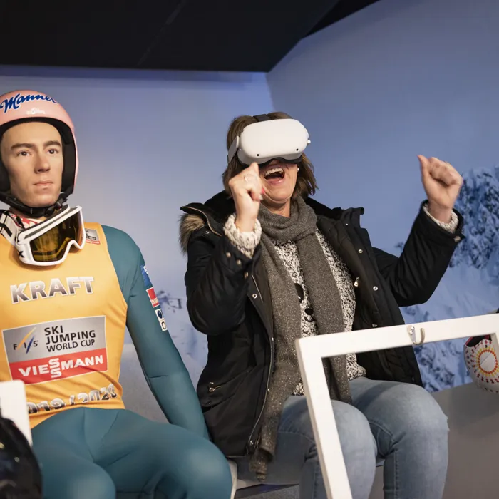 Avete sempre voluto sapere cosa si prova a saltare con gli sci? Beh, ora è possibile! Sedetevi accanto al saltatore Stefan Kraft sulla trave e saltate dalla famosa collina Bergisel di Innsbruck. Grazie alla realtà virtuale, sarete vicinissimi. Sciate lungo le colline con leggende dello sci come Hermann Maier, Renate Götschl o Franz Klammer.