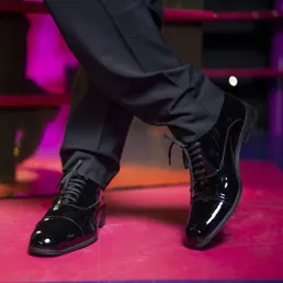 Leonardo DiCaprio trägt einen schwarzen Anzug mit passender Fliege und Lackschuhen. Mit einem Glas in der Hand ist er bereit, einen Abend mit den restlichen Stars und dir zu verbringen.